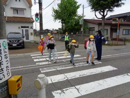 今日が今週のスタートです。1年生はいつもより荷物が多く大変でした。風も強く、あごにヒモをかけていなかった子供の帽子が飛ばされるなど一難去ってまた一難。上級生が帽子を拾ってくれたり、声をかけて励ましたりと1年生を助けていました。