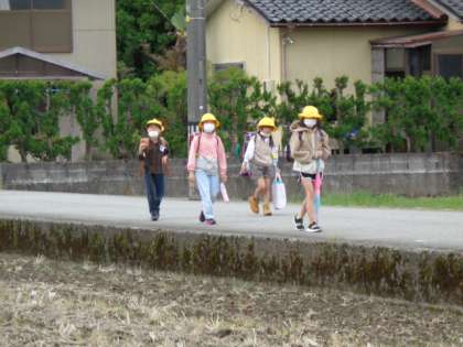 今日が今週のスタートです。1年生はいつもより荷物が多く大変でした。風も強く、あごにヒモをかけていなかった子供の帽子が飛ばされるなど一難去ってまた一難。上級生が帽子を拾ってくれたり、声をかけて励ましたりと1年生を助けていました。
