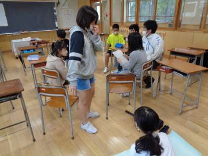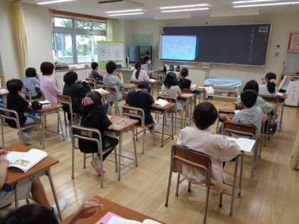 4年生は国語。聞き取りメモの工夫を学んでいます。