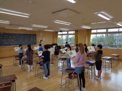 5年生は音楽。曲の特徴を生かして明るく歌っています。