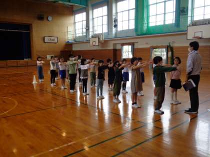 4年生は体育。先生の指示に従ってきびきびと行動していました。