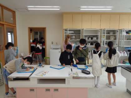 5年生は家庭「私の生活、大発見!」台所の道具をいろいろ発見しています。