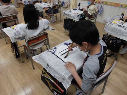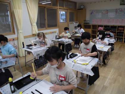 昨日の授業の様子です。3年生は初めて習字の学習をしました。道具の出し方しまい方、筆の持ち方など初めてのことがたくさんありました。先生の話をしっかり聞いて、落ち着いて取り組むことができました。