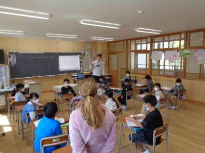 5年生は外国語活動。「How do you spell your name・・・」