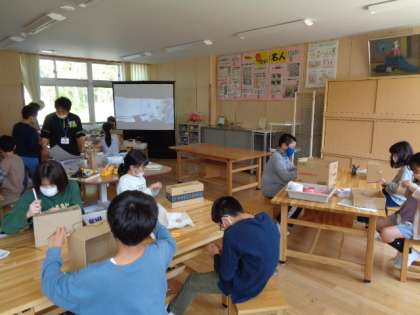 6年生は図工。くるくるクランクが形になってきました。