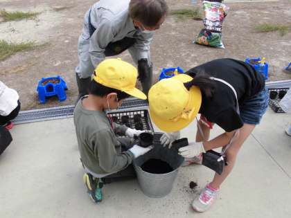 3年生は総合的な学習の時間にひょうたんを育てます。今日は地域の方に教えていただきながら1人2種類の種を植えました。誰も育てたことがない「ひょうたん」これからどうなるか楽しみです。