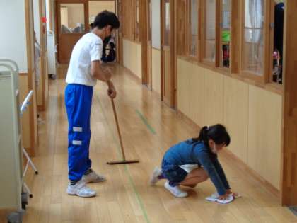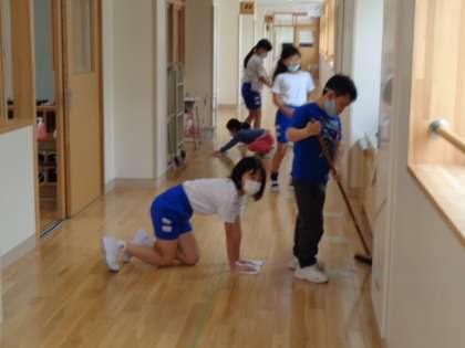 1年生から6年生まで全校児童を16の班に分けて縦割り班をつくっています。今日から縦割り班で協力して行う清掃がスタートしました。異学年交流の中で水から考え行動する力を育てていきたいです。