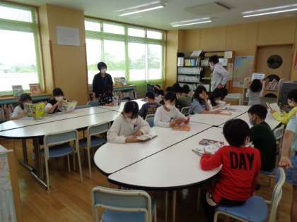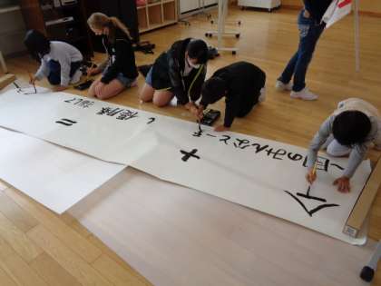 5年生は運動会の準備です。全校で考えたスローガンをつくっています。