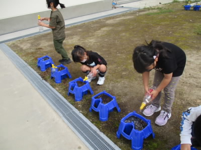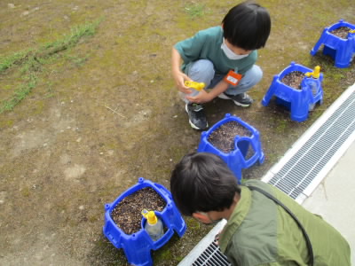 先週、あさがおの種をまき、毎朝水やりをしています。