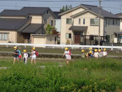 今朝も空がとても青く、暑くなりそうです。はまっ子たちは今日も元気に登校しています。学校に入るとさっそく中庭に出て水やりをしています。