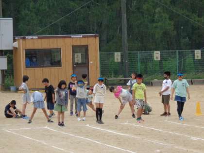 5限目。3・4年生が50m走の練習をしていました。スタートラインに立った選手たちは、名前を呼ばれると手を挙げて大きな声で返事をします。号砲とともに懸命に走り抜きました。