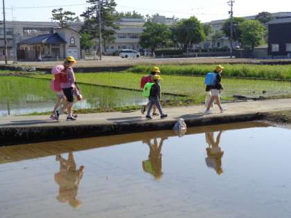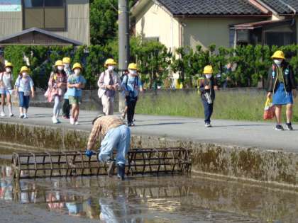今日は消防署の方が来校され、BFCバッジ授与式(少年消防クラブ)を6年生対象に行います。また、5年生は田植え体験です。使わせていただいている田んぼでは、朝から地域の方が準備をしてくださっています。ありがとうございます。