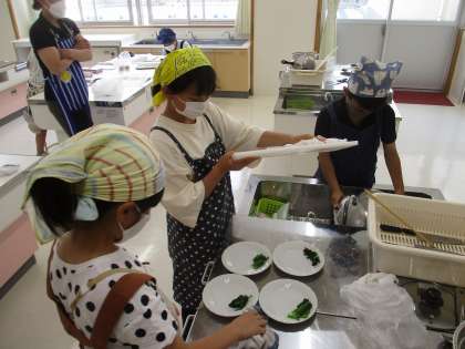 ほうれん草やじゃがいもの茹でる前と後の違いを見付けたり、調理した物をおいしく味わったりしました。