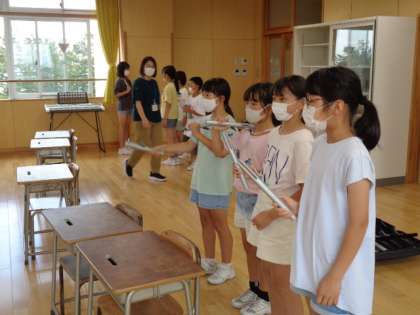 下は合奏・ハンドベルクラブです。緊張した様子で練習しています。