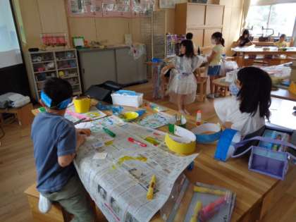 2年生は図工。一人一人が自ら工夫を形にしています。