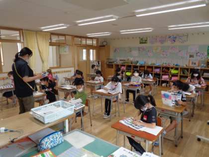 1年生は国語。「どうしてかというと」、わけをはなそうです。