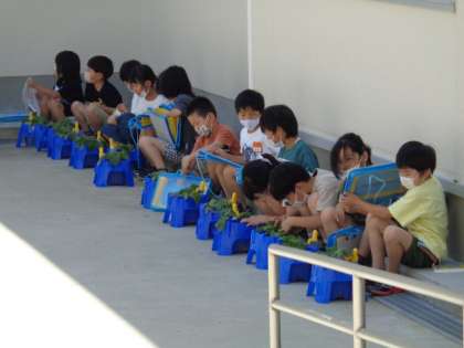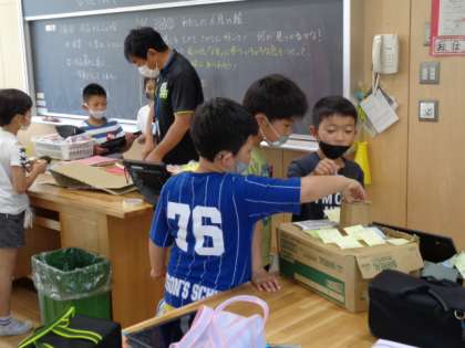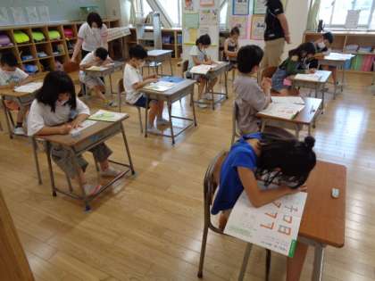2年生は書写。「おれ」(折れ)に気をつけて字の練習です。