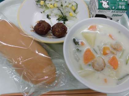 ホタテのクリーム煮は、ホタテのうまみが感じられ、パンと一緒に食べるとまたおいしかったです。ミートボールもやわらかかったです。