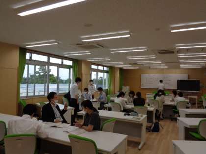 本校には、算数科部会の1学年と3学年に所属する先生方が集まり、授業について話し合いました。
