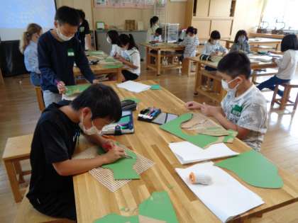 5年生は図工。彫刻刀を使っています。何ができるかな?