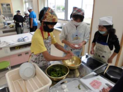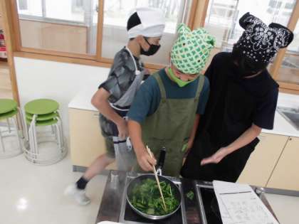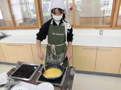 6年生は、朝食に合うおかずをグループで考えて、調理実習を行いました。30分以内でできて、栄養バランスのよいおかずがテーマです。