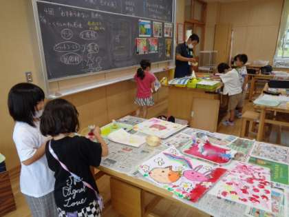 2年生は図工。みんな夢中になっています。