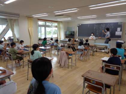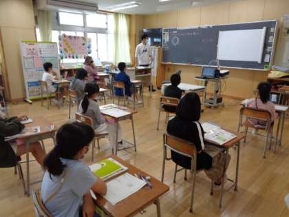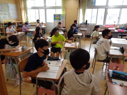 6年生は道徳。「世界がおどろく7分間清掃」です。