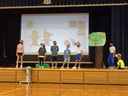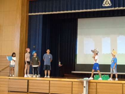 6月17日(金) 学校保健委員会リハーサル 公開日 2022/06/17 更新日 2022/06/17 はまっ子の一日 6月22日(水)の学習参観の後、学校医の先生、保護者、全校児童が集まり、学校保健委員会を行います。その中で、運動・保健委員会の子供たちが劇「めざせ睡眠王!〜めぶそく赤ずきんを助けて〜」を発表します。 今日はその劇のリハーサルを行いました。途中、セリフを忘れたり、動きがぎこちなかったりしたので、来週の本番までにもうひとがんばりです。保護者の皆様、楽しみにしていてください。