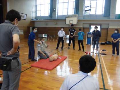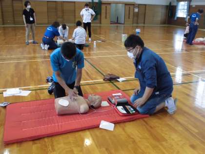 4グループになり胸骨圧迫やAEDを使う練習をしました。体力もかなり必要なので、たくさん仲間を呼び、協力して行う大切さを再確認しました。いざ、というときしっかり動けるよう、復習したいと思います。