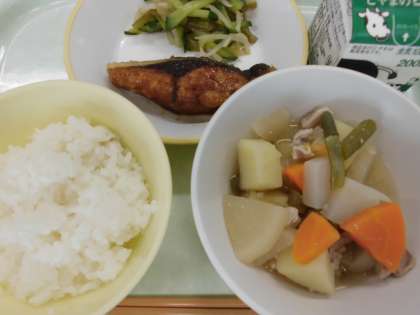噛み噛み月間最後の噛み噛みメニューでした。茎わかめ、こんにゃく、ごぼうがかみ応えのある食材です。どこに入っていたか分かりましたか?