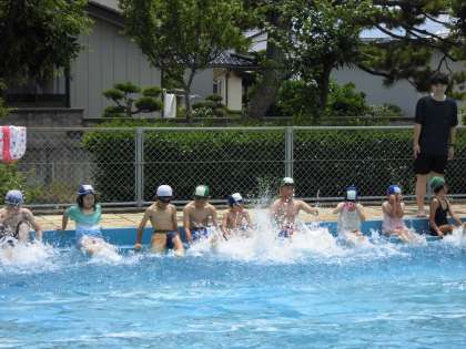 6年生は1年生のお世話をしながら、2・5年生は仲良く楽しく、3・4年生はちょっと速めの流れを作って元気よく泳ぎを楽しんでいました。
