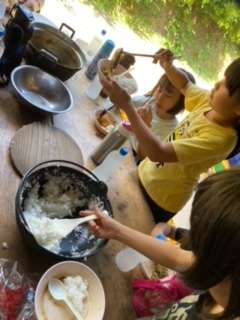 完食目指しておかわり中です。仲間と力を合わせて作ったカレーは、やっぱりおいしいです。