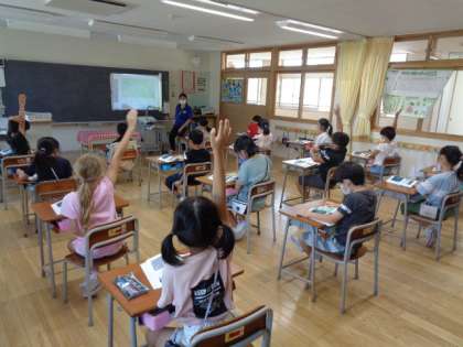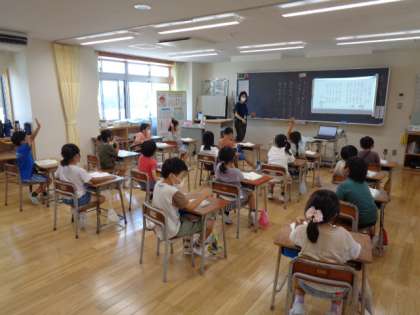 1年生は国語。「あさがおいっぱい あいうえお」