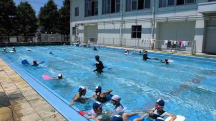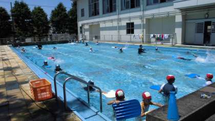 今日の水泳学習は、泳力に合わせてグループをつくり、それぞれに合った練習をしました。「少し浮くことができるようになったよ」「いきつぎの仕方を練習したよ」など少しずつ成長しています。この後が楽しみになってきました。