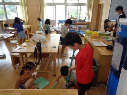 2年生は図工。後片付けをしていました。