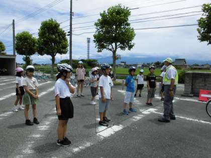 自転車に乗車するときは、しっかりとヘルメットをかぶる。左側を通行する。出発するときは、左右と後方を確認する。止まれの標識があったり、見通しが悪かったりする交差点では、必ず一旦停止し、安全を確認するなど、ここで学んだことは、日々の生活の中で生かしてほしいと思います。
