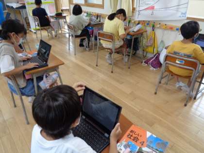 4年生はテストをして、クロムブックでドリル学習です。