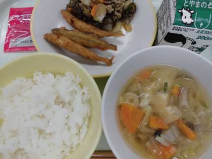 具だくさん汁には、薄揚げやシメジ、ニンジン等本当にたくさん具が入っていて食べ応えがありました。
