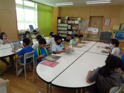 4年生は図書室で読書をしていました。