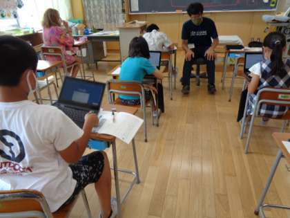 5年生は国語。報告文を書く学習をしています。