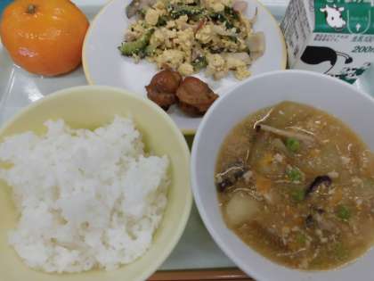 今日は、「きときとランチ」でした。富山らしさを感じることのできる献立です。今回のメインは、冬瓜です。「かもり」や「かんもり」と言われることが多くなじみのある食材です。とろみのついたそぼろあんがとてもおいしかったですね。