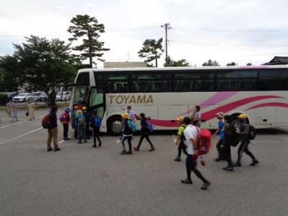 教員6名、校区のボランティアの方3名、カメラマン1名とともにバスに乗って出発です。室堂で山岳ガイドの方とも合流します。