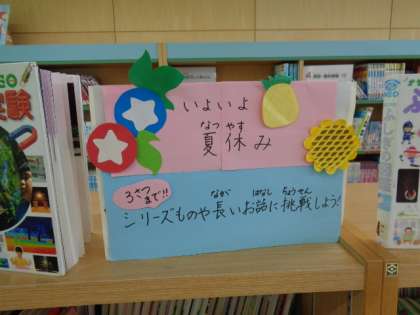課題図書のコーナーは充実しています。貸し出し中のものもありますが、すぐ返ってくることもありますので、待っていてください。