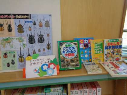 自由研究のヒントとなる本もたくさんあります。コーナーを特設しています。