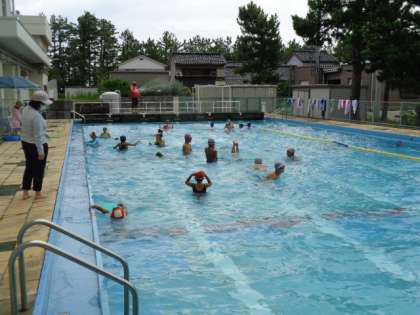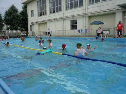 雨が降りそうな雰囲気の中、はまっ子たち25人の参加でした。先生に泳ぎを教えてもらったり、友だちと競い合ったりとプール開放を元気に楽しみました。
