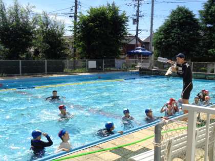 3年生、4年生は、救助が来るまで泳がないで浮かんで待つ、その体を浮かせる方法、ペットボトル1本を抱きかかえて浮かんでいる方法等、しっかりと学ぶことができたようです。