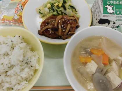 今日は、お月見給食でした。かわいいウサギの顔の大福がついていました。こしあんでとてもおいしかったです。ハンバーグのきのこソースかけも人気の一品でした。