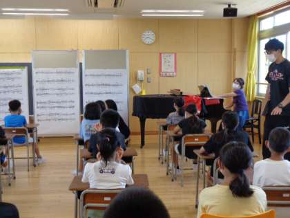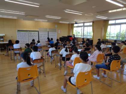 4年生、5年生は、10月16日の学びの発表会で披露する合唱練習を始めています。