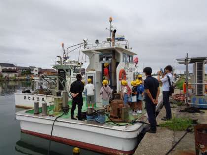 場所を移動して、船に実際に乗って中を見せてもらったり、漁港にある食堂を見学させていただきました。食堂では実際に魚をさばく様子を見せていただき、子供たちはその手際のよさに感激していました。