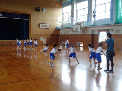 4年生は体育。最初はおにごっこ。ちょっとやり方が違うらしいです。